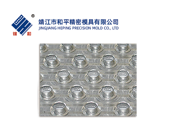 直徑:Φ9.52 翻邊高度:1.5~4.2 排數:12 級進形式:雙跳 孔距行距:25X21.65 片型:V型波紋/麻點